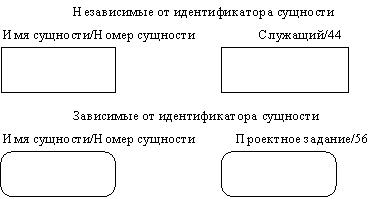 2.4.2. Методология IDEF1Метод IDEF1, разработанный Т.Рэмей (T.Ramey), также основан на подходе П.Чена и позволяет построить модель данных, эквивалентную реляционной модели в третьей нормальной форме. В настоящее время на основе совершенствования методологии IDEF1 создана ее новая версия - методология IDEF1X. IDEF1X разработана с учетом таких требований, как простота изучения и возможность автоматизации. IDEF1X-диаграммы используются рядом распространенных CASE-средств (в частности, ERwin, Design/IDEF). Сущность в методологии IDEF1X является независимой от идентификаторов или просто независимой, если каждый экземпляр сущности может быть однозначно идентифицирован без определения его отношений с другими сущностями. Сущность называется зависимой от идентификаторов или просто зависимой, если однозначная идентификация экземпляра сущности зависит от его отношения к другой сущности (рисунок 2.30).