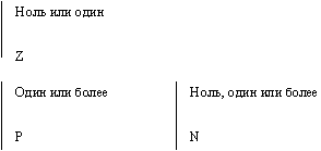 Если экземпляр сущности-потомка однозначно определяется своей связью с сущностью-родителем, то связь называется идентифицирующей, в противном случае - неидентифицирующей. Связь изображается линией, проводимой между сущностью-родителем и сущностью-потомком с точкой на конце линии у сущности-потомка. Мощность связи обозначается как показано на рис. 2.31 (мощность по умолчанию - N).