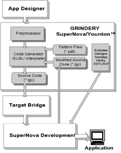 Кодогенераторы Grindery обеспечивают генерацию исходных кодов приложений на языках Informix- 4GL, NewEra, SuperNova. В состав всех кодогенераторов входят расширенные библиотеки классов (функций). Генератор для SuperNova содержит открытую библиотеку шаблонов.