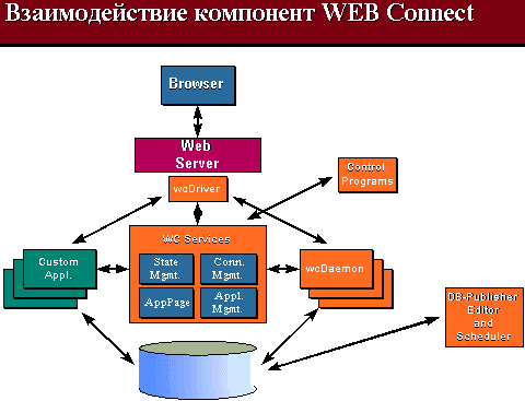 INFORMIX-Universal Web Connect - единая платформа, обеспечивающая работу единожды написанного web-приложения c любым из серверов, от INFORMIX Workgroup Server до INFORMIX XPS и Universal Server. Архитектура и механизм работы INFORMIX-Universal Web Connect показаны на рисунках 3 и 4. Помимо функциональности предоставляемой INFORMIX Web DataBlade, данный продукт обеспечивает: