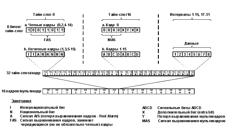 Для расширения объема полезной информации без расширения полосы кадры организуются в более крупные структуры, называемые мультикадрами (multiframes). В общем случае используются мультикадры двух типов: