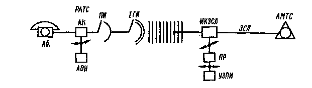 Соединительные линии предназначены для связи МТС с РАТС. При наличии в городе АМТС она связывается с РАТС двумя пучками линий: заказно-соединительных и соединительных междугородных. Заказно-соединительные линии (исходящие) предназначены для осуществления исходящих междугородных соединений через АМТС. На ГТС заказно-соединительные линии включены в восьмую декаду 1ГИ и оборудуются исходящими комплектами заказно-соединительных линий ИКЗСЛ, промежуточными регистрами ПР и устройством запроса и приема информации УЗПИ (рис.).